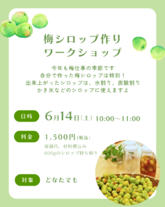 6月14日(土)に梅シロップ作りのワークショップを行います